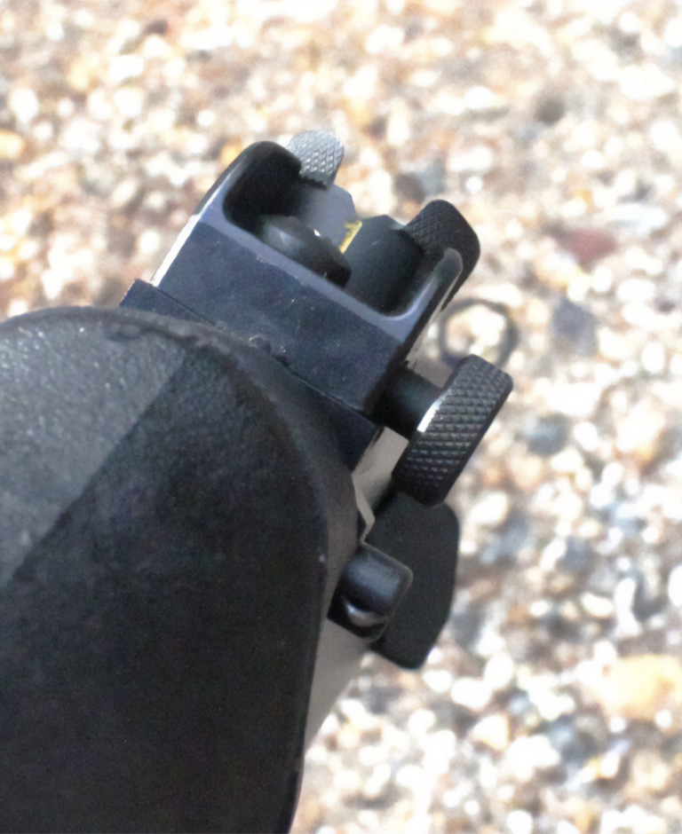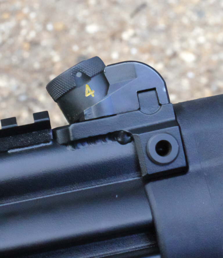 There is a Picatinny rail on the top of the receiver for scope mounting and the fore end is a modern M-LOK type enabling a variety of accessories to be mounted at will. Provision is made for the mounting of a sling and like all the H&K family of weapons, there are the 2 holes in the stock to hold the take-down pins when the rifle is disassembled for cleaning lest these critical small parts get lost in the field. Like it’s big brother, the G3 the PTR63 handles well in the hands and holds steady on target for precise off hand shooting.