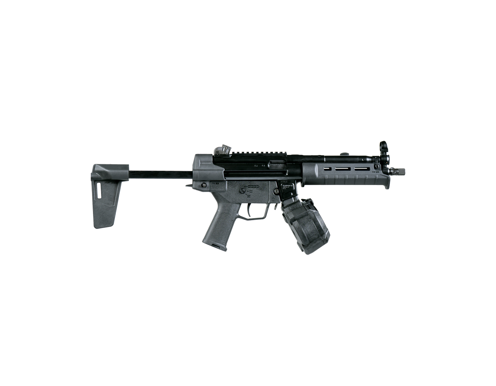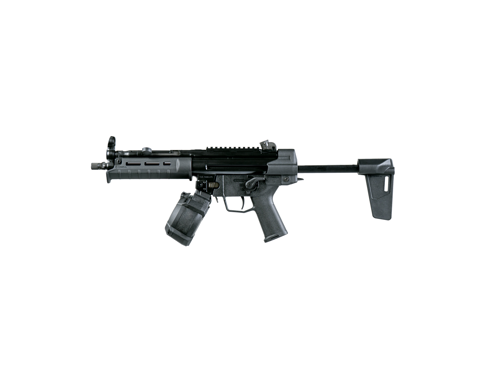 Offered in multiple magazine configurations, the 9CT MP BR allows users to select either a standard 30-round steel magazine or a 50-round drum magazine, combining classic MP5-pattern reliability with enhanced ergonomics and modern accessory support.