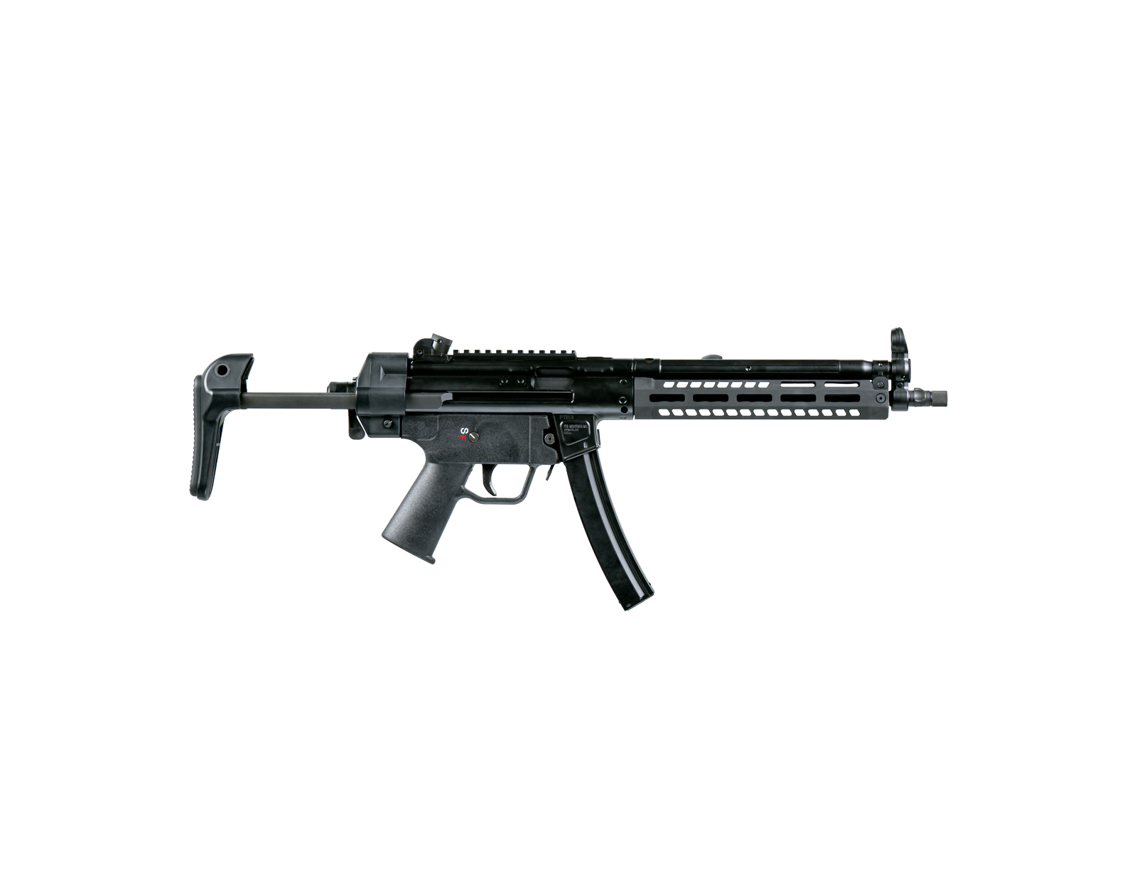 This configuration exists to provide a long-barrel MP5-pattern SBR optimized for improved ballistic performance while retaining compact handling and adjustability. The 12.5″ nitride heat-treated barrel supports suppressor compatibility, while the extended M-LOK® aluminum handguard increases available mounting space for optics and accessories. A tungsten dead-blow weighted, full-auto profile bolt carrier supports consistent cycling and long-term durability.