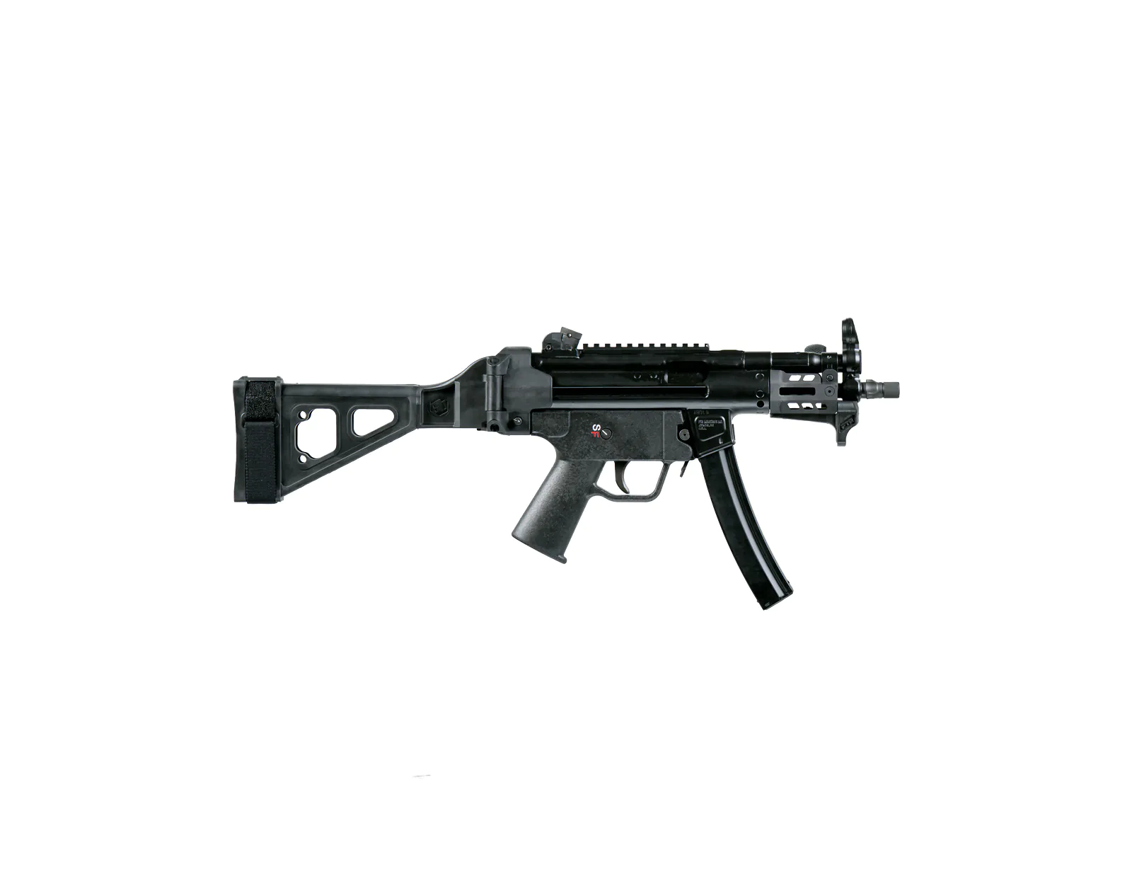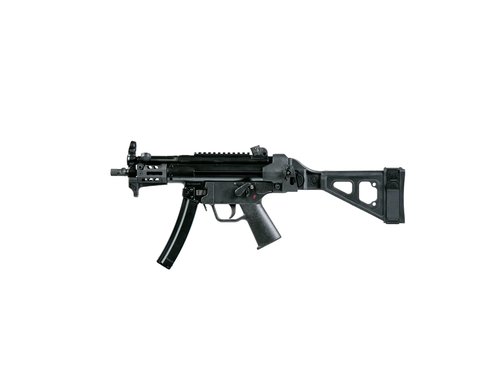 The PTR 9RS BR is a semi-automatic 9×19mm pistol configured with a factory-installed pistol brace, combining compact MP5-pattern handling with enhanced optic mounting capability. Sold as a pistol at the point of sale, it utilizes PTR’s roller-delayed blowback operating system to deliver smooth recoil characteristics and consistent cycling.