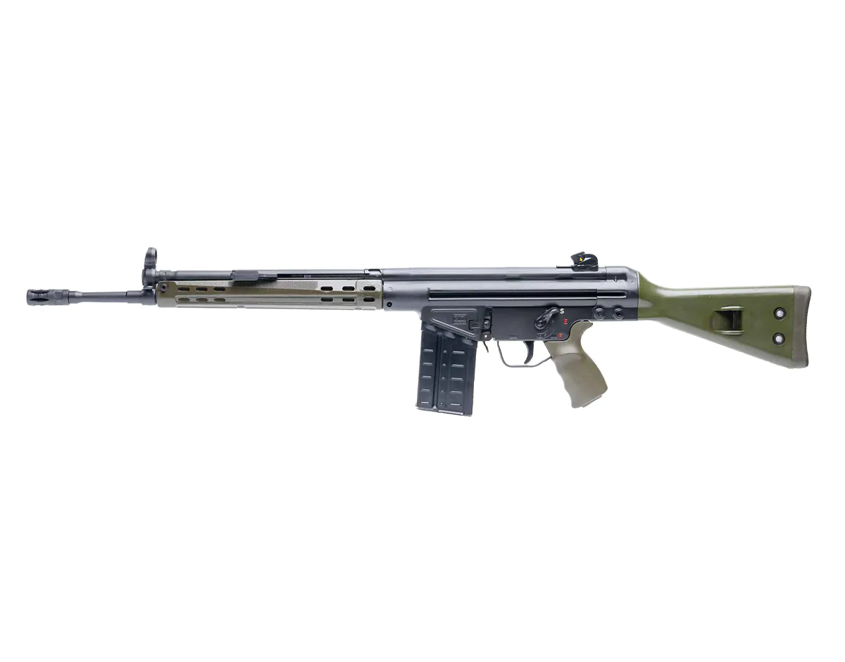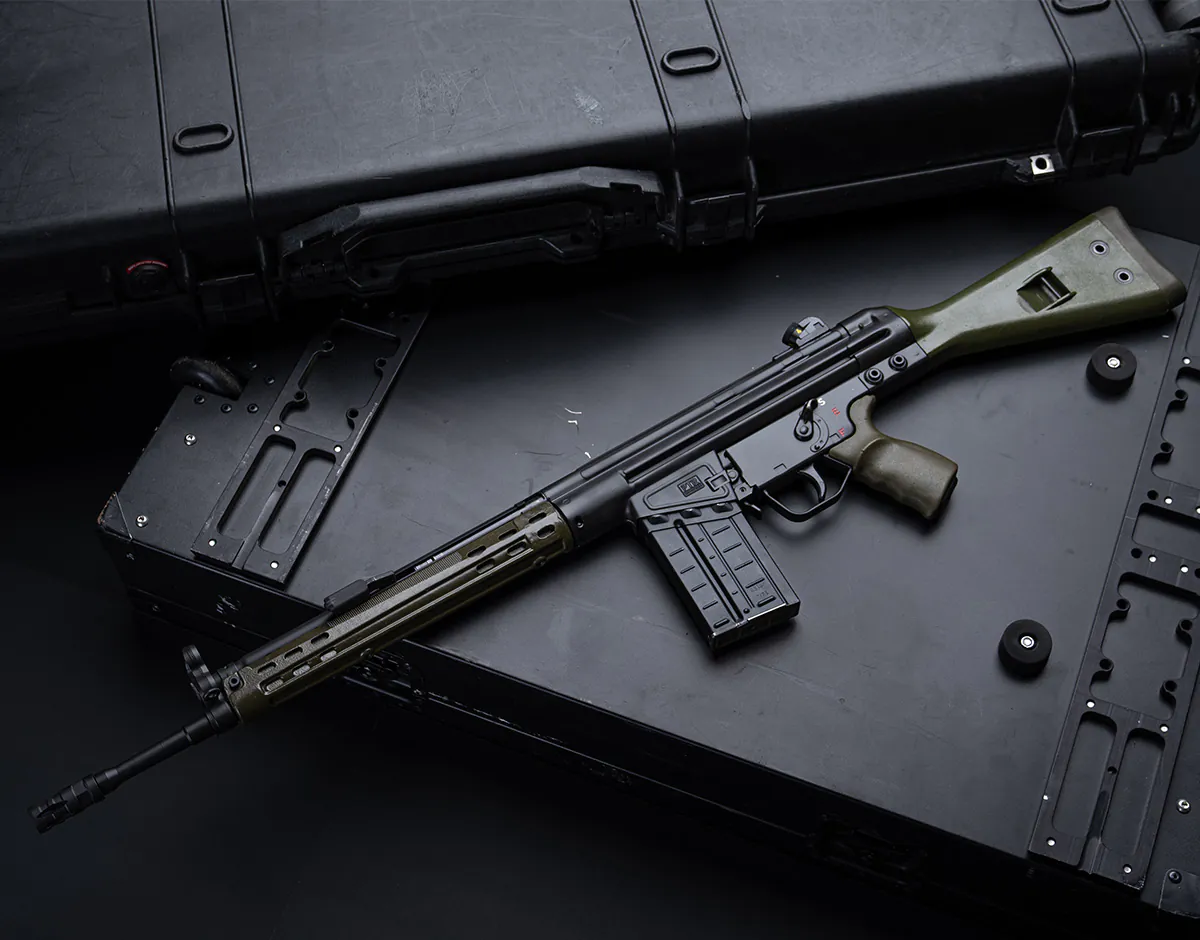 The GI Rifle stands as a masterpiece of craftsmanship in our .308 lineup. It integrates a robust roller-delayed blowback system with a heat-treated, fully automatic bolt carrier. This design guarantees consistent reliability across diverse conditions. The semi-automatic configuration is ready for NFA-registered auto sear packs, offering adaptability for various user preferences.